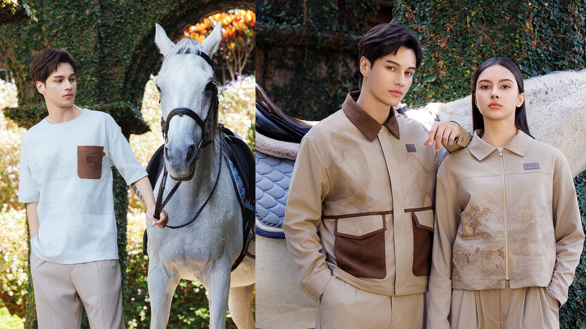 百搭的百駿T 恤以現代染印手法重塑畫作氛圍,並加入金色扣環、口袋等細節點綴,走復古美學路線,直接把藝術變成日常最好搭的潮流單品。想再正式一點,內搭聯名襯衫就是俐落又有品味的選擇——這次襯衫真的下足設計功夫:男款在口袋設計中融入百駿圖的口袋巾巧思;女款除了挺版剪裁與金扣細節,也加入百駿圖 意象的領巾點題。穿上身的優雅與時尚氣場,無論是商務會議或重要場合,都能展現個人質感與品味。