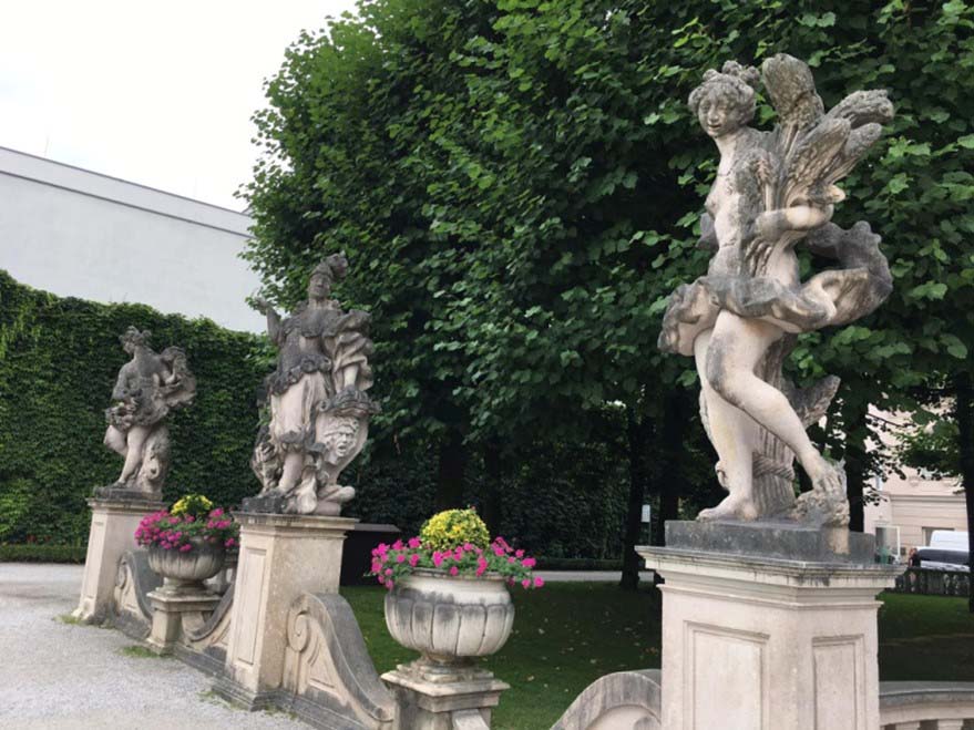 真善美拍攝景點崔普拉的家,就是借用薩爾斯堡的米拉貝爾宮(Mirabell)及其花園、薩爾斯堡城堡要塞等,這些建築當然也都是世界文化遺產。米拉貝爾宮是模仿義大利和法國巴洛克風格的宮殿,由薩爾斯堡總主教沃爾夫迪特里希於1606年修建。幾何對稱的花園內,設有埃涅阿斯、赫剌克勒斯、帕里斯和普路同的四組神話主題的雕塑,為義大利雕塑家Ottavio Mosto的作品。