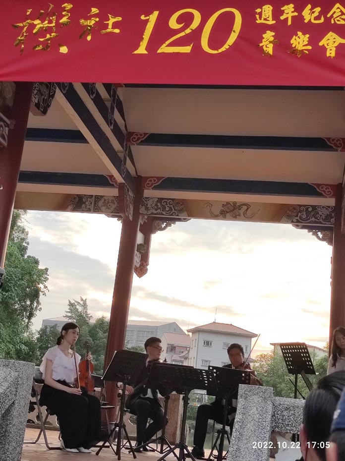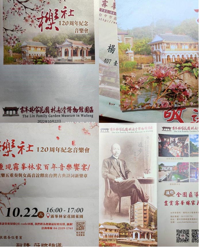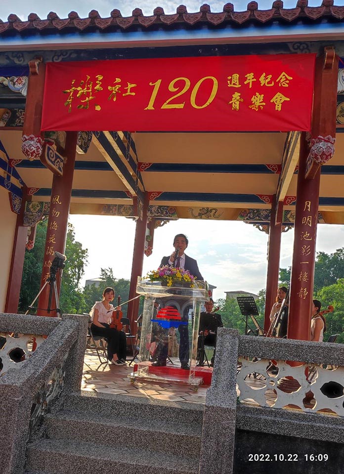 創立於1902年的櫟社,今(2022)年適逢120週年,霧峰林家花園及明台高中為紀念臺灣漢文詩社之首的櫟社120週年,特於10月22日櫟社創立當天,於該校風光明媚的臺灣一級古蹟「五桂樓」前的「飛觴醉月亭」,舉行了一場由Strike a Chord共鳴樂團(註1)演奏的音樂會。「五桂樓」就是當年林獻堂邀請梁啟超來臺居住地方;而「飛觴醉月亭」正是當年櫟社詩人們聚會吟詠之處。櫟社最早的發起人為霧峰林家的林癡仙、林幼春叔姪與彰化詩人賴紹堯三人,主要參加者都是中臺灣菁英或仕紳,而「臺灣議會之父」林獻堂則是在1910年加入,之後就很快讓櫟社蓬勃發展,成為櫟社靈魂人物。