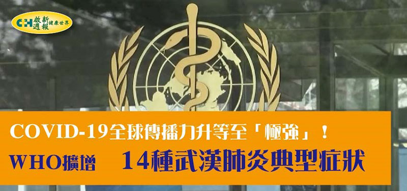民國109(西元2020)年1月下旬,雖然武漢肺炎(COVID-19)已經爆發,但WHO並還沒有發布全面禁止旅行的訊息,也不知道會沒過多久,一回國的3月4日WHO就發佈一份「世衛及中國2019年冠狀病毒疾病聯合專家組考察報告」,指出COVID-19(武漢肺炎)「不是流感、也不是SARS」,而是一種全新的病毒,人類體內並無已知的免疫力,而這個病毒具有「極強」的傳播力;並重新歸納出患者的典型症狀擴增為14種,將近9成病例都出現發燒症狀,是排名第一的症狀。