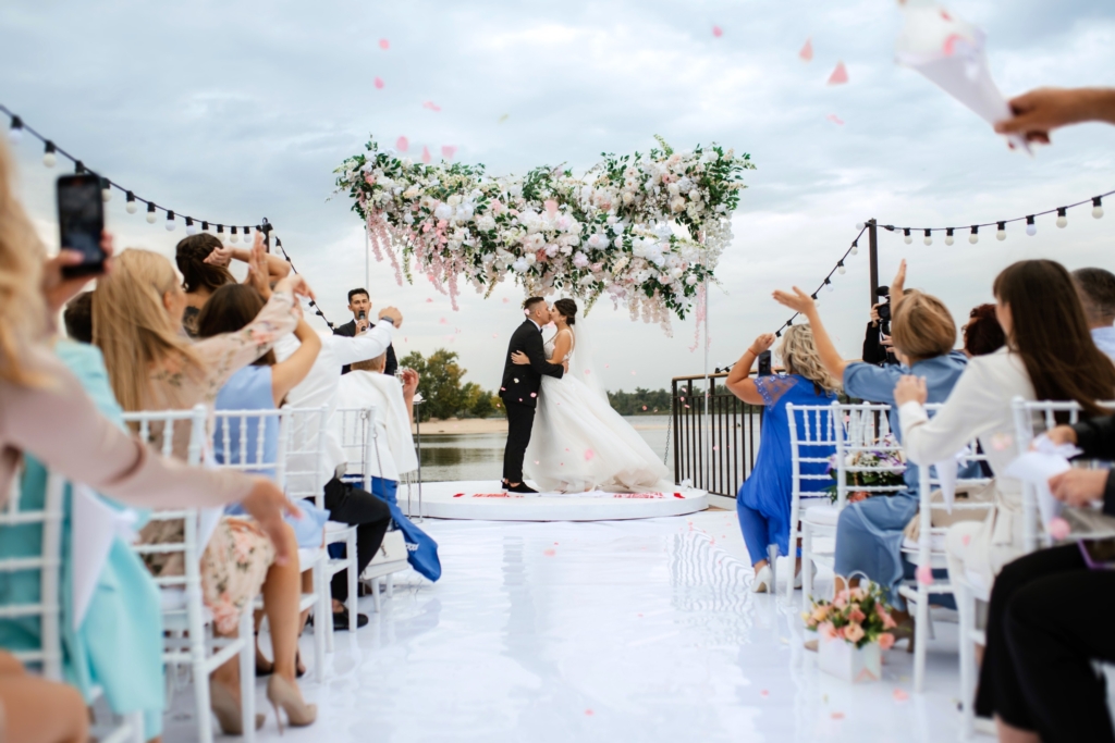 婚禮的舉行時間點,也會影響穿搭選擇。夏天的婚禮,通常人們會選擇輕爽又透氣的材質,像是雪紡紗,輕盈又浪漫。婚禮如果在冬天舉行,人們會選擇面料厚實的衣著,像是毛料披肩或是絨布長裙,這些面料既保暖又優雅。