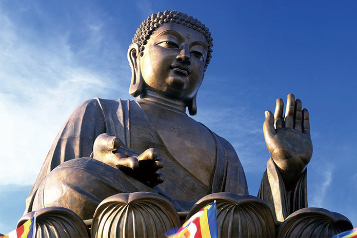 「天壇大佛」位於海拔520米的昂坪,為全世界最大的室外青銅佛像,壯觀雄偉,吸引許多外地遊客來此參拜,參拜大佛前,須先登完268層階梯,階梯上常看到遊客們登階的喘呼呼樣貌;大佛下的平台,有著六尊舞姿銅像,稱之為「六天母獻供」,一般遊客多停留於此平台遠眺山海景觀拍照留念。