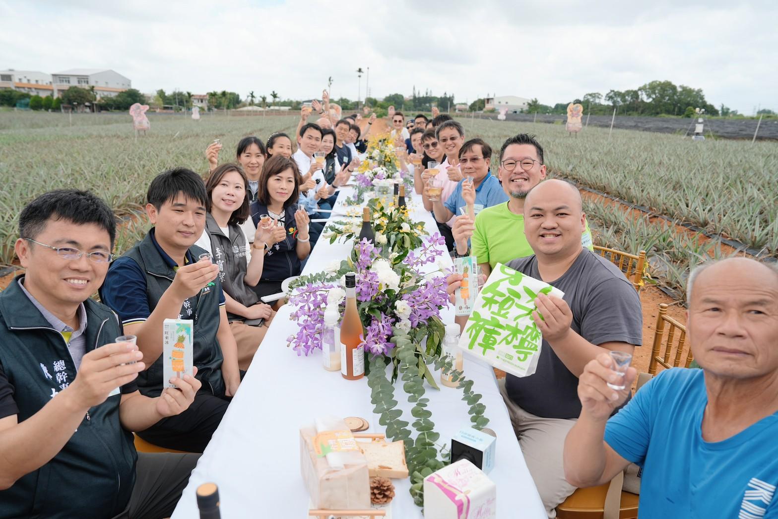 今日的活動也特地邀請日本友人至旺萊山享受鳳梨田園風光美景,並由旺萊山、春一枝以及樂檸漢堡共同協力籌備,除了甜美的當季鳳梨,更準備了日本旅客最愛-鳳梨酥、品牌聯名冰品-嘉義優鮮旺來冰、鳳梨雲感吐司等,讓與會貴賓徜徉在鳳梨香氣與風味中。