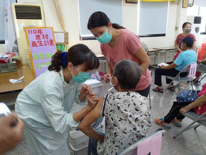 ▲65歲以上長者接種COVID-19疫苗送宣導品。(圖/南投縣政府提供)