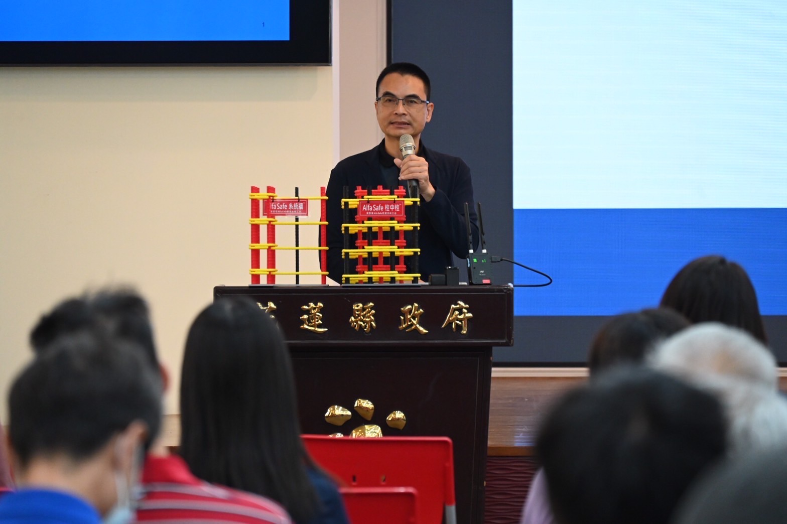 戴雲發是中力建築系統有限公司總經理,也是「Alfa Safe 耐震系統工法」創辦人,此耐震工法結合其多年來的研究與創新,榮獲「國家發明獎」金牌最高榮耀肯定。此次說明會吸引80多位在地業者熱烈參與,內容談到耐震系統工法對於居民安全的重要性,還有營建產業所面臨的困境,更重要的是如何在工程中兼顧環境永續,進而實踐淨零排放的目標。