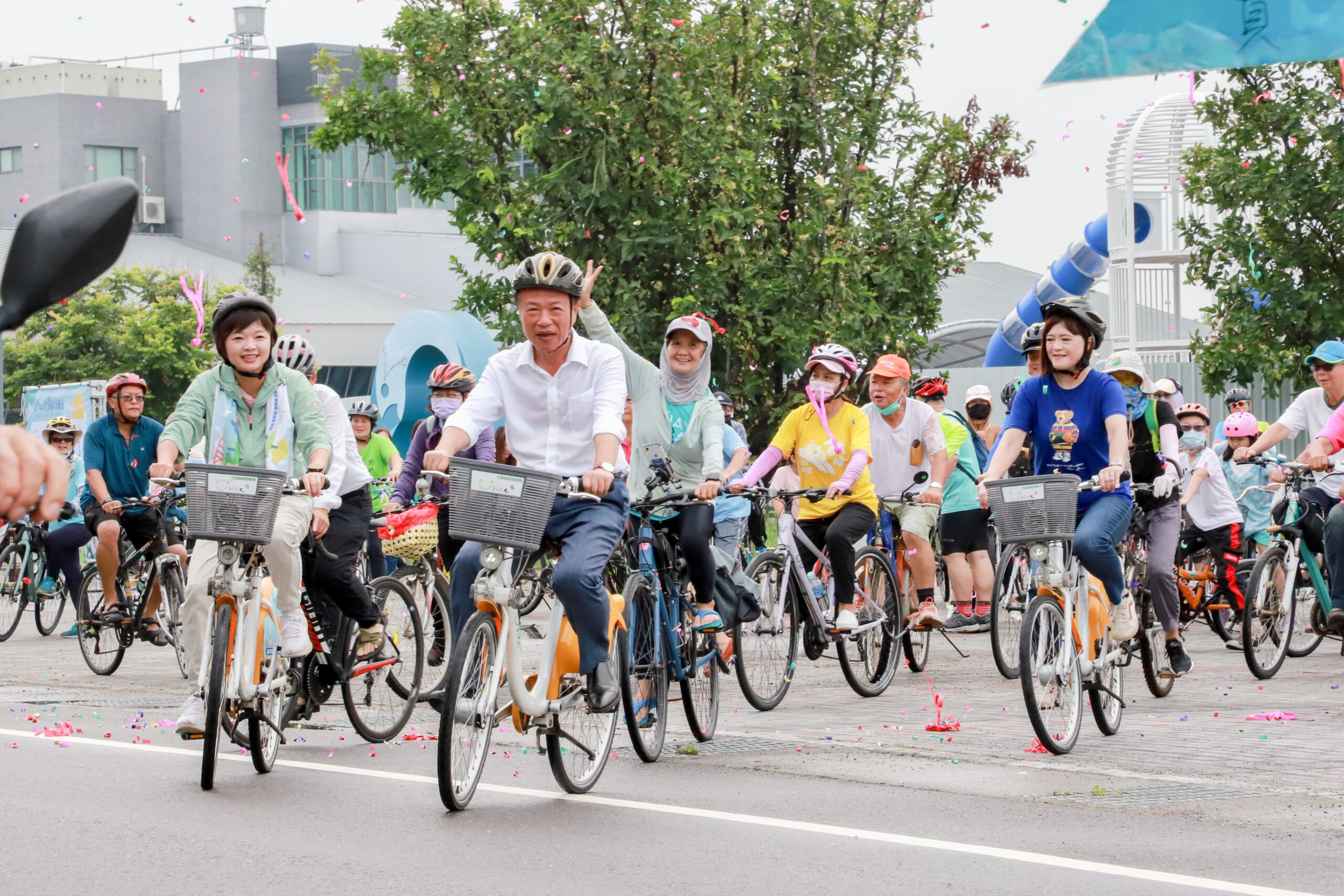 響應6月3日世界自行車日,嘉義縣水上鄉公所今(3)日舉辦「跨越23.5嘉義縣水上騎跡」活動,藉由自行車運動推廣在地美食與鄉內自行車道系統,騎車途中還為民眾準備中庄大饅頭及三界埔仙草飲作為補給品,縣長翁章梁等人一同到現場與參與民眾暖身做操,並騎上自行車領頭出發,場面十分有歡樂。