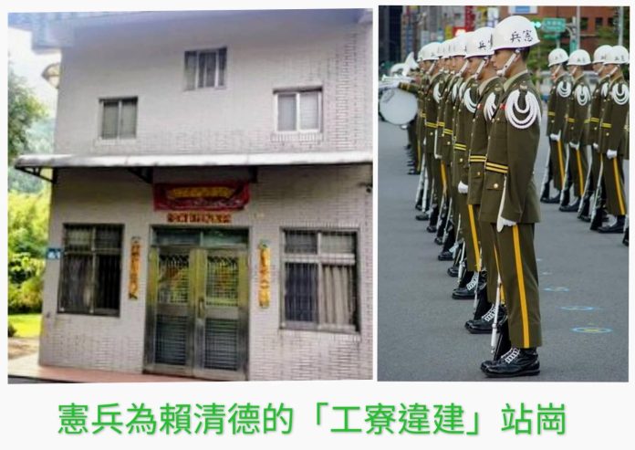 然反諷的是,以「守衛『憲法』,建構信念。發揚忠貞軍風,砥礪梅荷志節」的憲兵,竟被派遣銜命戍守「無『使用執照』及『建物登記』等合法證明資料」的賴清德「工寮違建」!而更為嚴重的誤區是:憲兵係「具有軍法、司法警察權力的『執法』部隊」,結果讓「執法」的憲兵,去守護「非法」的違建,此豈不荒天下之大法!?這般讓憲兵認知錯亂的台灣奇蹟,究竟是誰人做的莫名安排?!