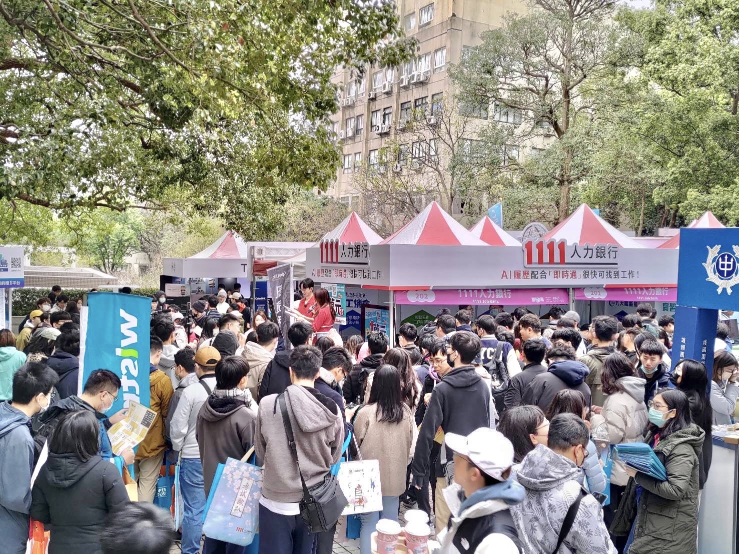 ▲國立陽明交通大學校園徵才博覽會,學生爭相參加1111人力銀行「找工作送1萬」的活動。