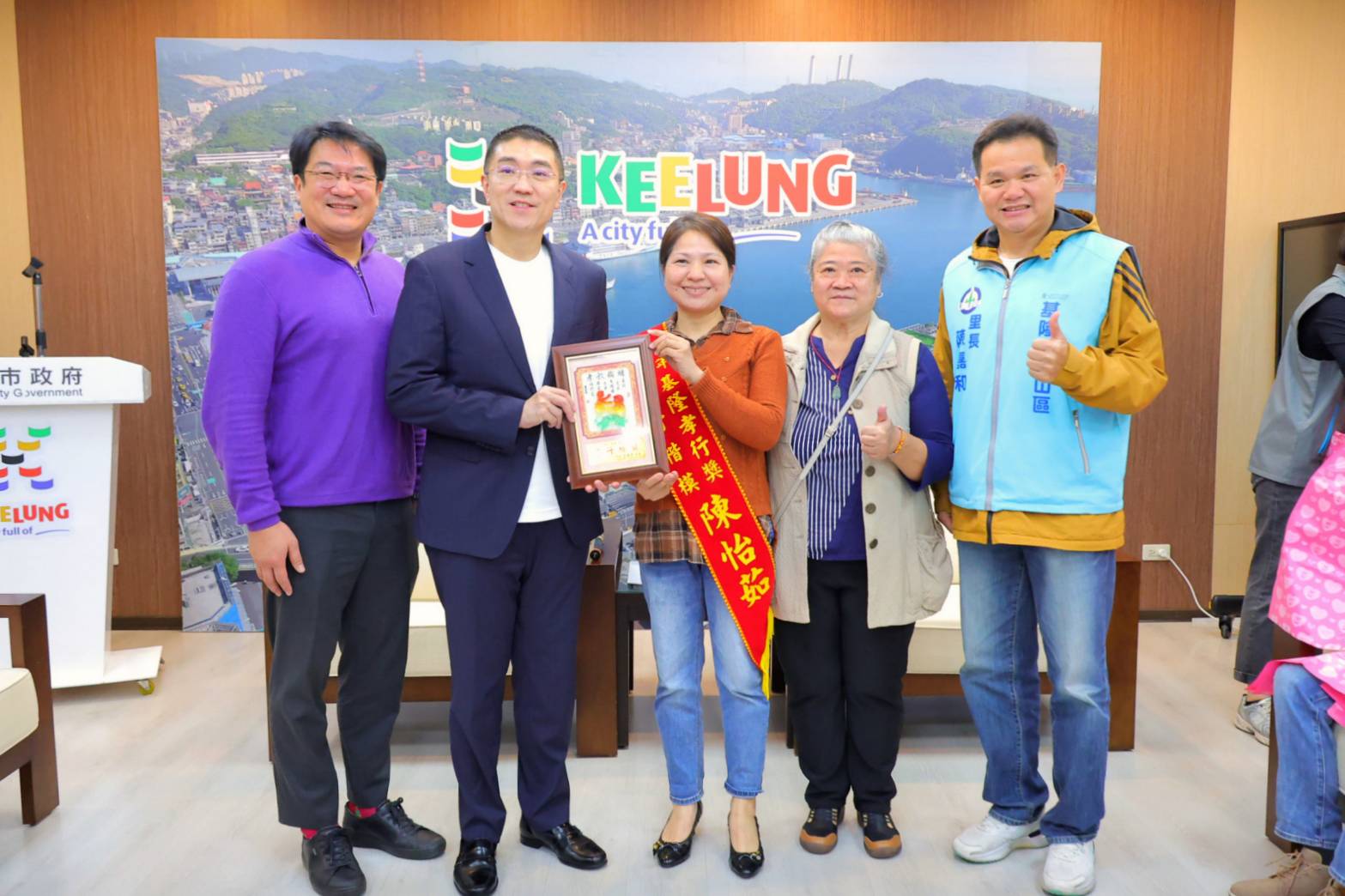 謝國樑提到,自小父親時刻叮嚀「孝順長輩」是重要的美德,今天看見9位楷模奉獻自我、為家庭付出,以實際行動詮釋孝行的精神,他非常感動,也期待在這樣的拋磚引玉下,可以啟動更多善的循環,集結大家的小愛化為基隆市的大愛,打造基隆更有愛的城市。