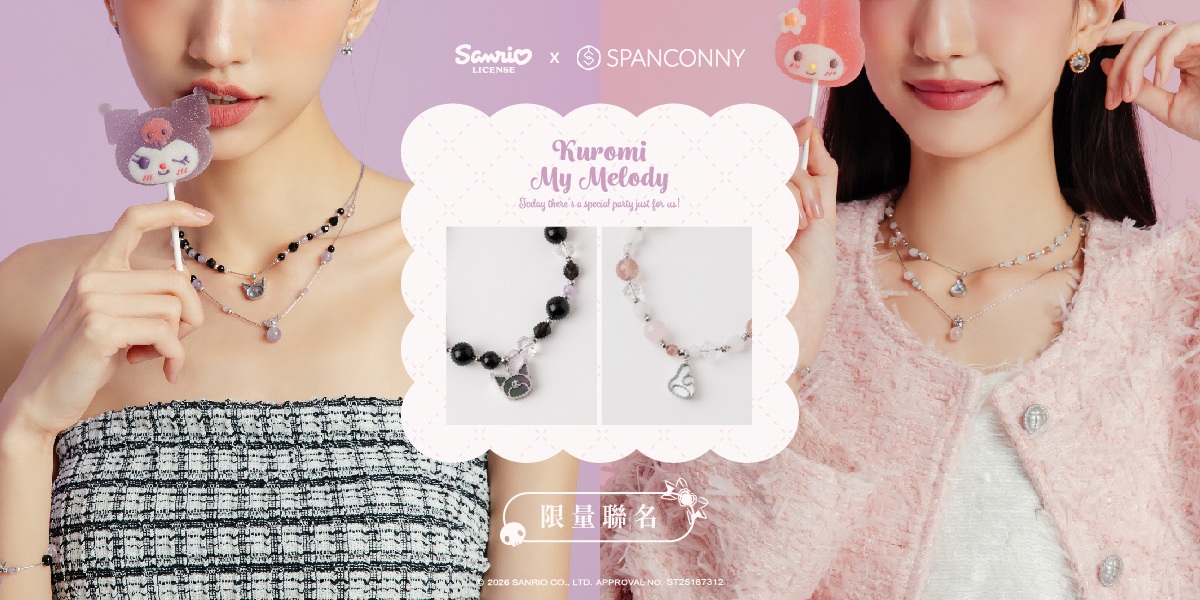 三麗鷗的粉絲集合囉!水晶飾品品牌SPANCONNY,首度與三麗鷗人氣角色「酷洛米&美樂蒂」聯名,打造療癒能量與甜酷魅力兼具的聯名系列,全新三麗鷗聯名於1/23(五)正式登場,並且推出限量滿額好禮,包括聯名限定的主題貼紙與造型徽章,每一款都可愛爆表,等你來收藏!